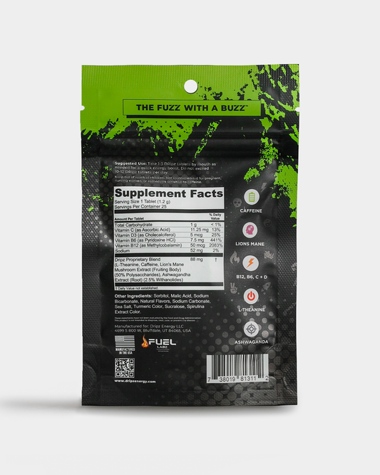 Meet your new obsession: caffeinated nootropic energy candy that’s part buzz, part brain boost, and all rebellion. These little fizzy bad boys pack a microdose of 25mg caffeine—just enough to ignite your inner beast without frying your circuits. Toss in Lion’s Mane, Ashwagandha, and mega-vitamins (C, B6, B12, D and more), and you’ve got a pocket-sized powerhouse supplement for focus, energy, and domination.